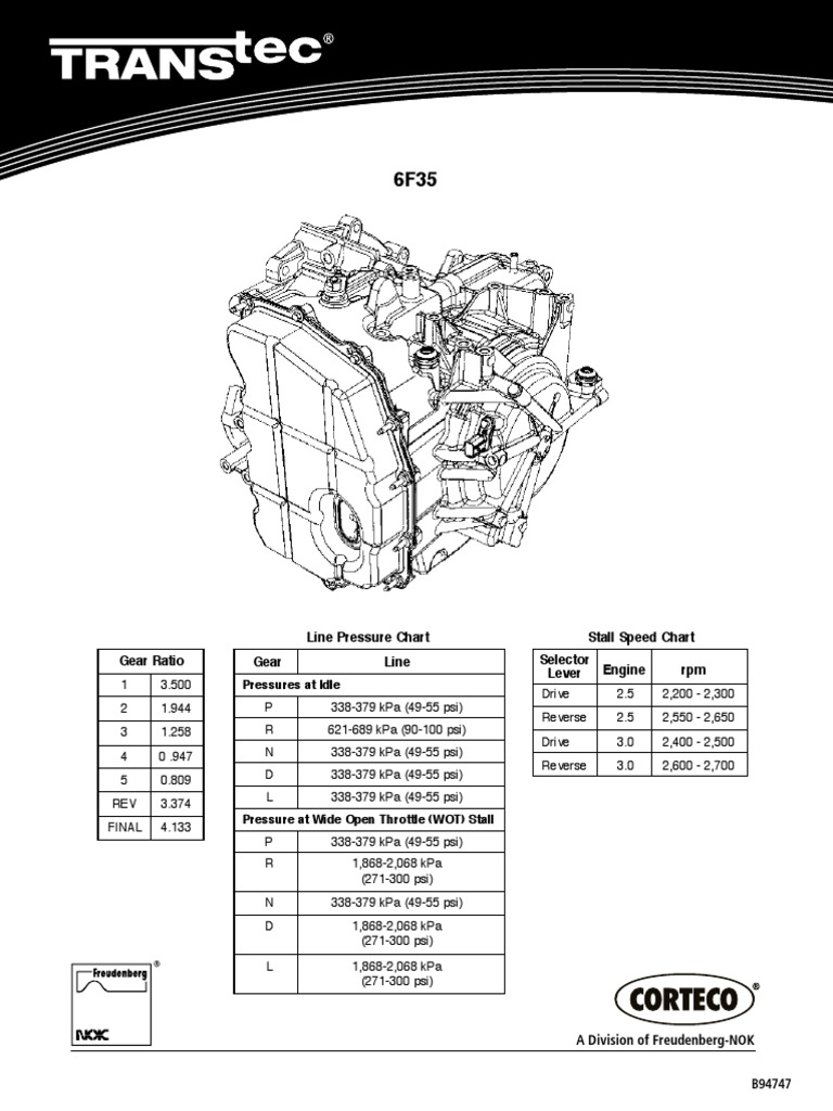 . For example the 6F35 transmission that goes in the 2016 Ford Explorer is a 23 L transmission. Bushings Bushing Kits. 6F35 Gen 1 Transmission Catalogue.