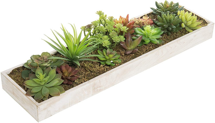 24 Inch Artificial Succulent Arrangement In White Wood Plant Box Mygift